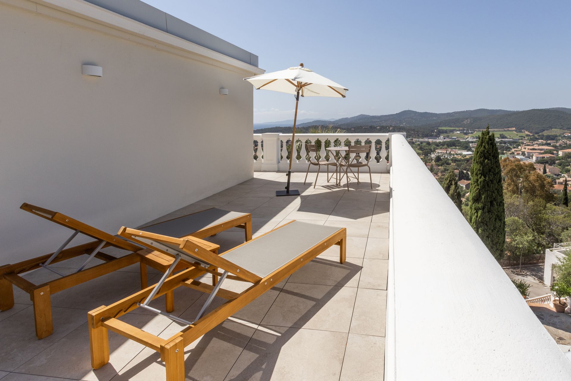 Une chambre donnant sur une magnifique terrasse sud de 25m2 avec vue imprenable.